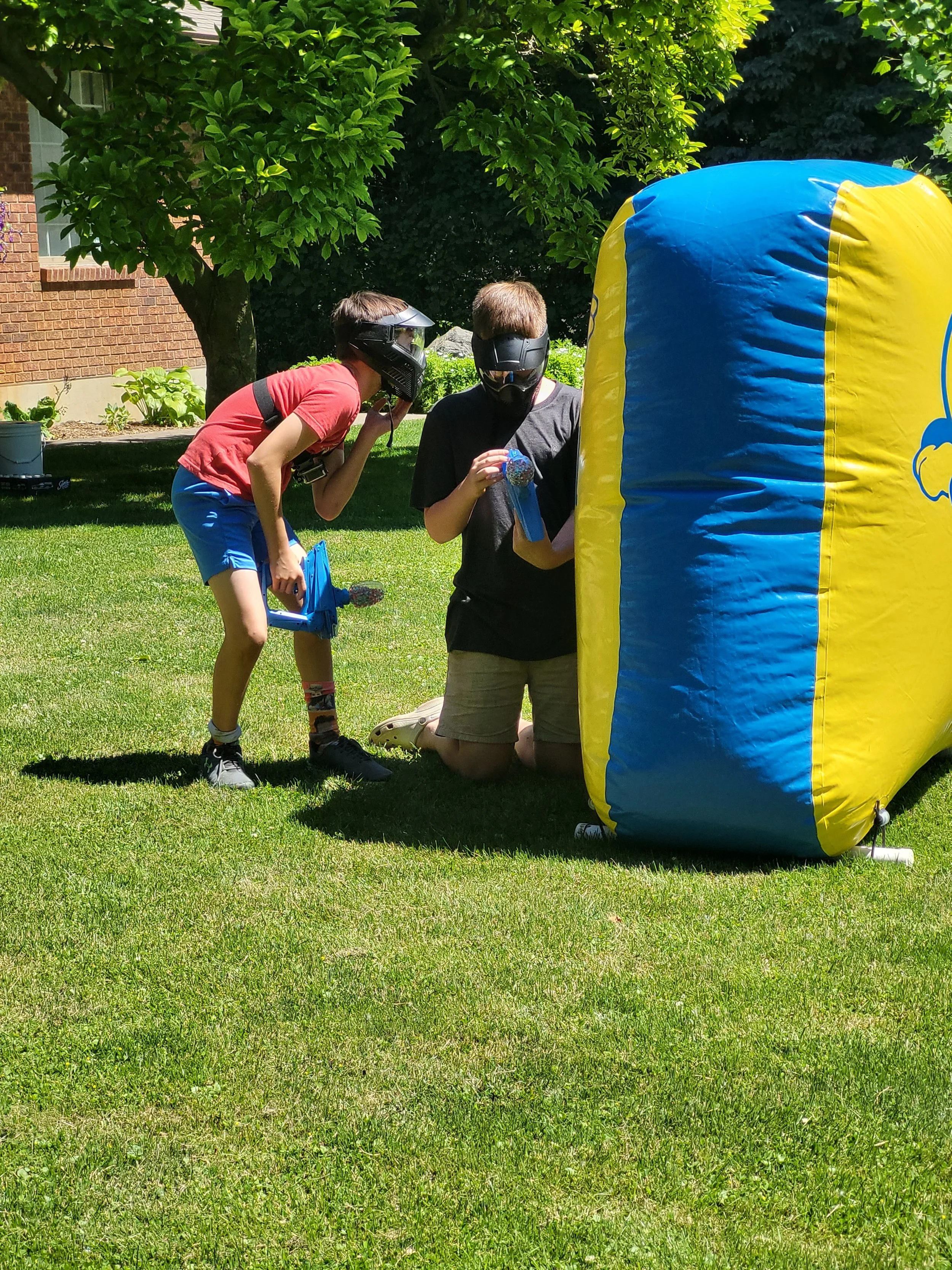 All you need is a safe, open space for us to set up the battlefield! A backyard is perfect, but we can also set up in parks (with permission), fields, or even large indoor spaces like a gym. Players should wear comfortable clothes and closed-toe shoes. Long sleeve shirts and pants for younger players is highly encouraged.